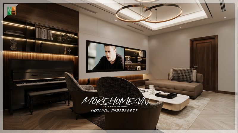 Mẫu thiết kế nội thất phòng khách biệt thự cao cấp tại biệt thự Park city với ý tưởng sử dụng phong cách hiện đại nhưng mang lối sang trọng, ấm áp.