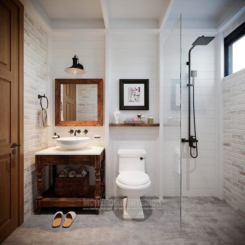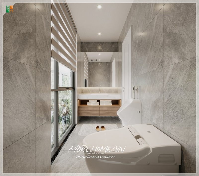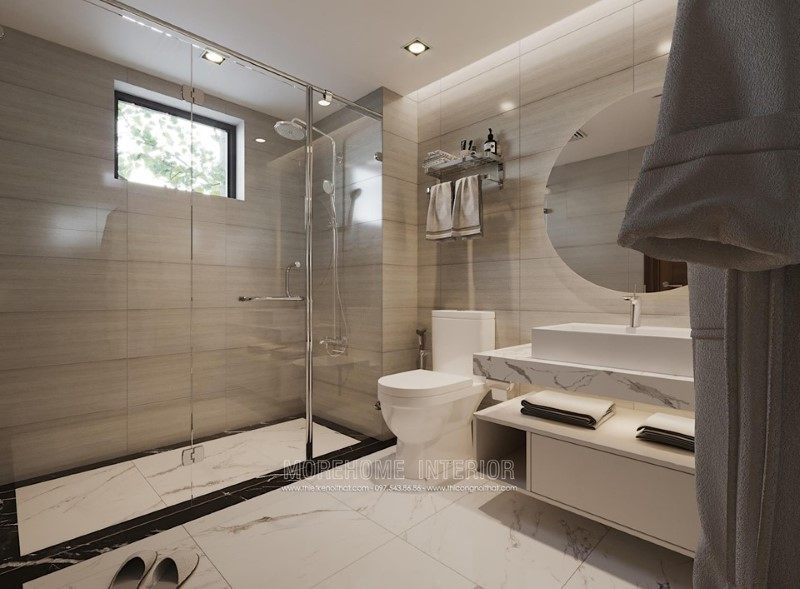 Thiết kế phòng tắm nhà phố, biệt thự với phong cách hiện đại với tông màu sáng nổi bật không gian đem tới sự thoải mái cho người sử dụng.