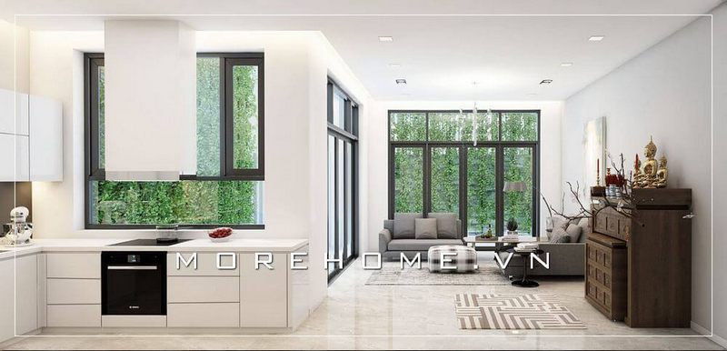 Những không gian mở với cửa sổ lớn, vách kính và ban công rộng rãi không chỉ giúp ánh sáng tràn ngập mà còn tạo cảm giác gần gũi với thiên nhiên. Việc sử dụng ánh sáng tự nhiên không chỉ làm tăng tính thẩm mỹ mà còn cải thiện sức khỏe tinh thần cho cư dân, mang lại cảm giác thư giãn và thoải mái.